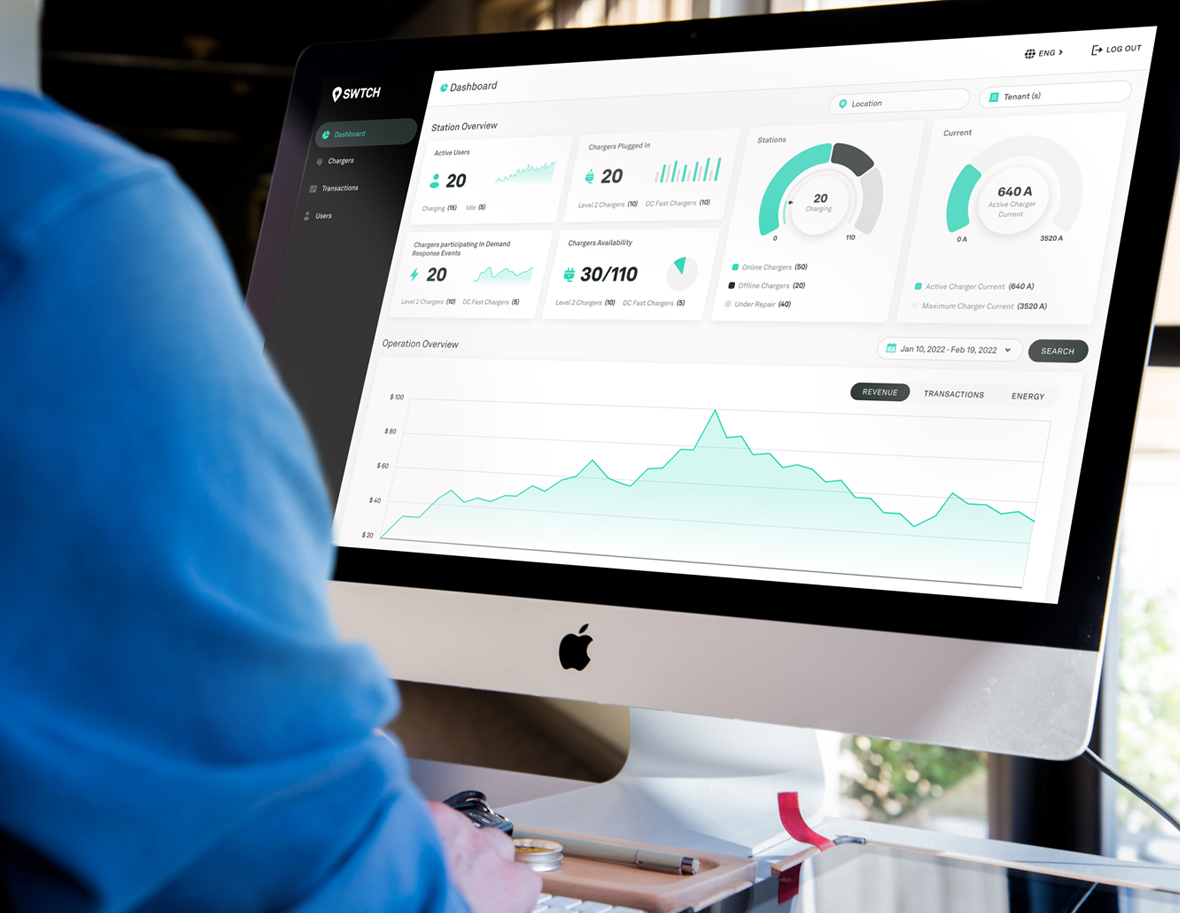 SWTCH SEMC est une solution personnalisée qui simplifie la gestion des bornes de recharge de VE pour les gestionnaires et promoteurs d’immobilier commercial : structures tarifaires multiples, lutte contre le flânage, facturation des propriétaires de VE, remise des revenus, tableau de bord complet pour la production de rapports, etc. Nous concevons chaque système en fonction des particularités de la propriété et des besoins des visiteurs.